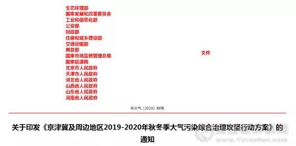 近日,生態(tài)環(huán)境部、發(fā)改委、工信廳等多部委及北京、天津、河北等省市共同引發(fā)了《京津冀及周邊地區(qū)2019-2020年秋冬季大氣污染綜合治理攻堅(jiān)行動(dòng)方案》通知,明確提出2019-2020采暖季停限產(chǎn)時(shí)間為2019年10月1日至2020年3月31日。明確要求京津冀大氣污染傳輸通道“2+26”城市PM2.5平均濃度同比下降4%以上,重污染天數(shù)同比下降6%以上。