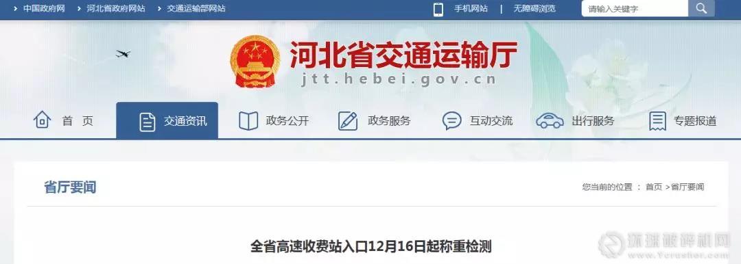 2019年12月16日起,河北省高速公路所有收費站執行入口稱重檢測,對經稱重檢測發現的違法超限超載貨運車輛,除拒絕駛入高速公路外,屬地政府還將依法進行處罰,嚴格落實“一超四罰”“六個不放行”等制度規定。