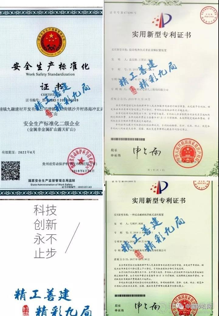 礦山安全生產標準化二級證書,是貴州省玄武巖礦山首家取得安全生產標準化二級證書的企業,成為貴州省玄武巖礦山砂石生產行業的標桿企業。1月,成功將路面料外銷湖南,首戰告捷。11月19日,在成都簽下第一單,九融公司綠色環保特級道砟伴隨鐵路延伸到天府之國,標志著九局玄武巖砂石成功打入省外市場,實現“黔砂出省”。