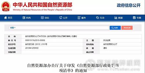 《自然資源部行政處罰事項清單》(僅列舉土地類和礦產類)