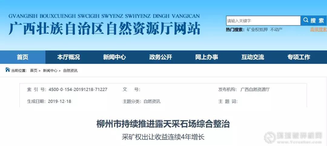 據了解,2019年以來,廣西壯族自治區柳州市持續推進露天采石場綜合整治,嚴控采石場數量,大幅度提高單個采石場年產能,提升資源保障能力,截至11月,已完成5宗露天采石場整治出讓,出讓金額4.06億元。柳州市規劃布局5大砂石資源礦山開發基地,大力提升產能,5大基地建成投產后產能由原411萬噸提升到4200萬噸,全面保障柳州市中心城區基礎設施建設所需的砂石資源。
