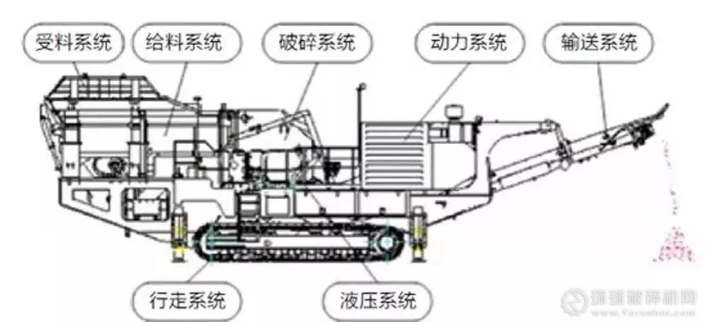 對于履帶移動破而言,最重要的就是其配套的系統設計。履帶移動式破碎站包括行走系統、破碎系統、給料系統、輸送系統;目前,在國內同類型產品中,較多采用兩種模式:一種為柴油發動機加發電機加發動機,驅動各執行機構;另一種為柴油發動機加液壓轉動系統,驅動執行機構;后者的主要優勢在于柴油發動機提供的動力,無能量轉換損耗,在物料的破碎處理中,液壓傳動系統易于實現過載保護。