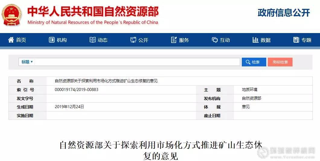 針對自然資源部國土空間生態修復司發布《關于建立激勵機制加快推進礦山生態修復的意見(征求意見稿)》,2019年10月24日,中國砂石協會和中國砂石骨料網報道了《重磅 | 礦山修復的春天來了!自然資源部提出合理利用廢棄礦山土石料,可對外進行銷售》,引發各界廣泛關注!