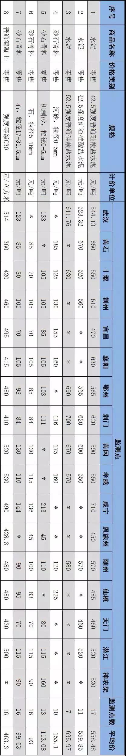 據了解,湖北省發改委發布12月20日全省砂石等原材料價格應急監測匯總報表顯示: