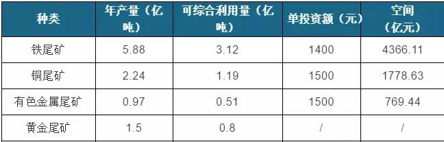 尾礦中仍存在5.61億噸尚未得到有效利用,若此部分尾礦充分得到循環利用,市場可投資總額約6914.18億元。