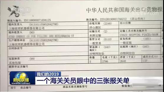 據(jù)了解,2019年12月28日,央視《新聞聯(lián)播》“我們的2019?一個海關(guān)關(guān)員眼中的三張報關(guān)單 ”,講述了特斯拉公司、第二屆中國國際進口博覽會和世邦工業(yè)科技集團股份有限公司的三張報關(guān)單的故事。這三張報關(guān)單極具代表性,見證了2019年中國持續(xù)改革開放,外貿(mào)進出口逆勢增長的韌性與活力。
