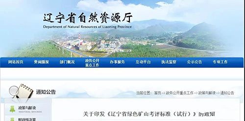 據了解,近日,遼寧省自然資源廳印發《遼寧省綠色礦山考評標準(試行)》,規范遼寧省綠色礦山考評工作,加快推進綠色礦山建設。主要包括砂石行業綠色礦山、水泥灰巖行業、黃金行業、有色金屬行業、冶金行業、化工行業、非金屬行業、煤炭行業的考評標準。