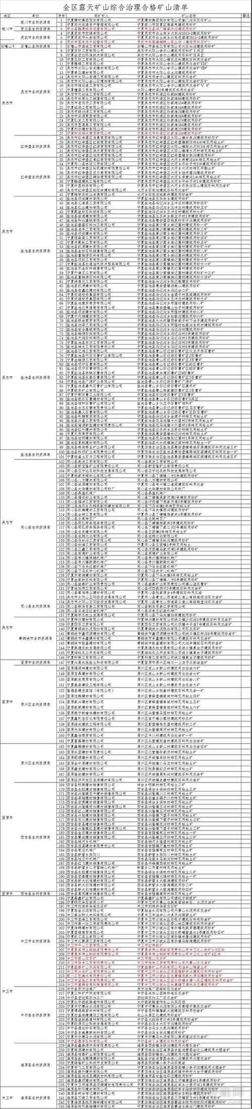 全區露天礦山綜合治理合格礦山清單 :