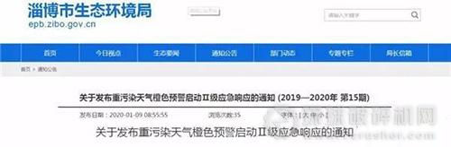 根據(jù)中國環(huán)境監(jiān)測總站與京津冀及周邊地區(qū)省級環(huán)境監(jiān)測中心會商結(jié)果,預(yù)計1月10日起,山東省內(nèi)陸地區(qū)將出現(xiàn)一次大范圍中重度重污染天氣過程。按照省重污染天氣應(yīng)急工作辦公室要求,淄博市于2020年1月8日23時0分發(fā)布重污染天氣橙色預(yù)警,2020年1月9日23時0分啟動Ⅱ級應(yīng)急響應(yīng)。