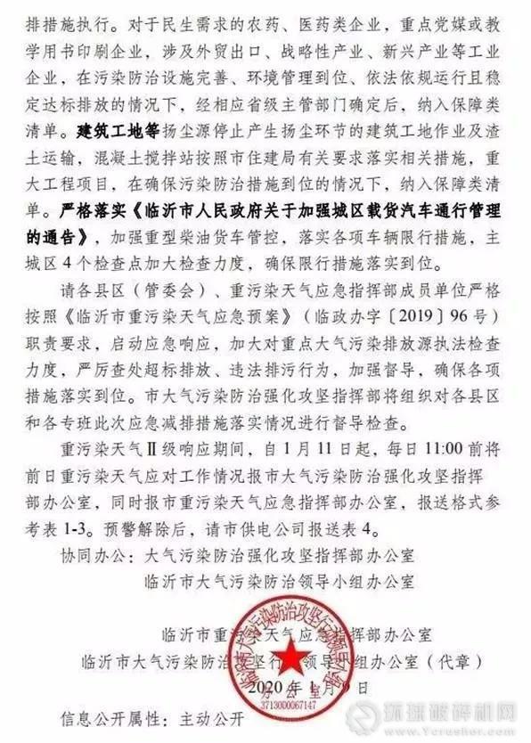 二、揚塵管控措施。除重大民生、搶險工程外,停止所有在建工地的土方、拆除作業(yè),停止施工工地石材切割、渣土運輸、噴涂粉刷等作業(yè)。礦山開采企業(yè)要停止爆破、破碎等產(chǎn)生較大揚塵的作業(yè)工序。