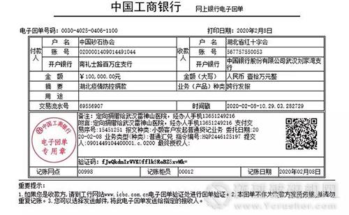 針對當前湖北疫區形勢嚴峻,急需各方面財力物力支持的緊急情況,中國砂石協會于2月8日向武漢雷神山醫院定向捐贈十萬元人民幣用于湖北疫情防控。