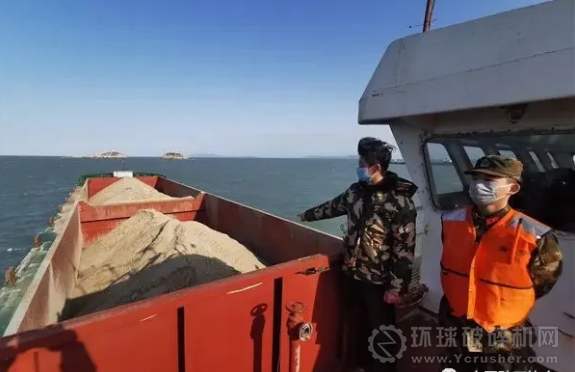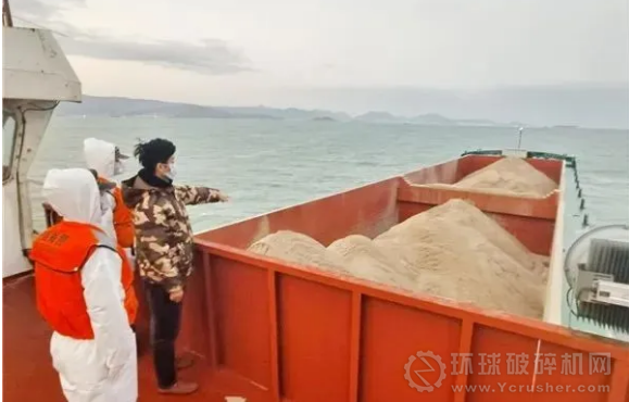 福州海警立即喊話表明身份,并對該嫌疑船舶進行登臨檢查。經查,該船無法提供裝載海砂的任何合法手續,涉嫌非法運輸海砂約1萬噸。