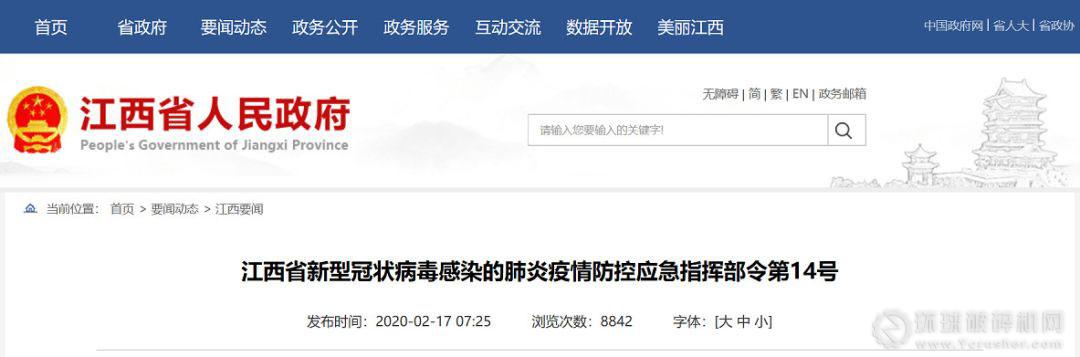 2020年2月17日,江西省人民政府發布江西新冠肺炎疫情防控指揮部14號令,明確指出:取消因疫情防控對各類企業、建設項目復工復產的批準手續,復工復產改為報備制。企業和項目建設單位只需提前24小時將疫情防控方案向當地報備。