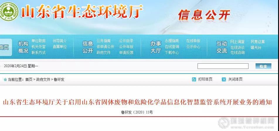 為加強危險廢物全過程動態管理,提高全省固體廢物和危險化學品信息化監管水平,防范環境風險,省生態環境廳建設了山東省固體廢物和危險化學品信息化智慧監管系統(以下簡稱固廢智慧監管系統),即日起正式啟用,現將有關事項通知如下。