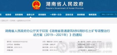 值得注意的是,2019年10月21日,湖南省人民政府辦公廳印發《湖南省普通建筑材料用砂石土礦專項整治行動方案(2019—2021年)》指出,湖南將用3年時間對全省砂石土礦進行專項整治,到2021年,全省砂石土礦(不含河道