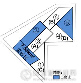 廈門灣外采砂區分為6小塊,其中第②和⑤塊已出讓,剩余4塊未出讓。本項目為第④塊,即D區塊,見圖2。
