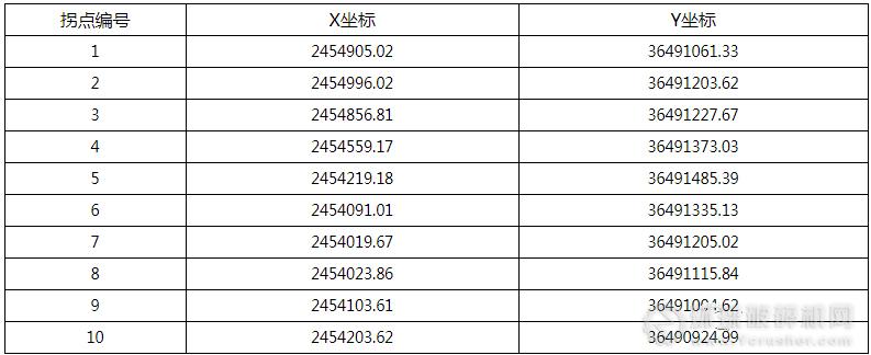 (十二)礦區面積及范圍坐標:礦區面積為0.33平方公里,礦區坐標(2000坐標)為: