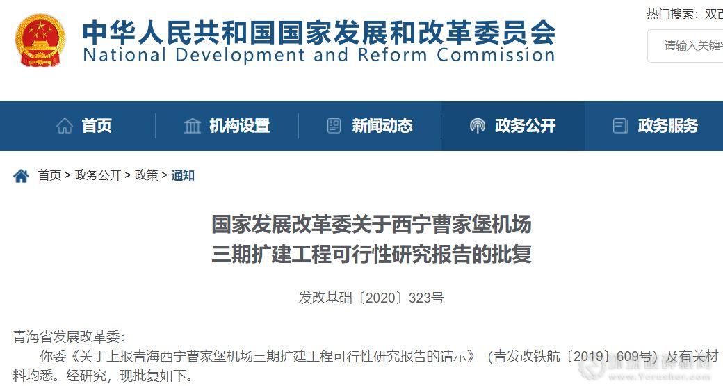 據了解,國家發改委批復西寧曹家堡機場 三期擴建工程可研報告,項目總投資105億。以下是具體批復內容: