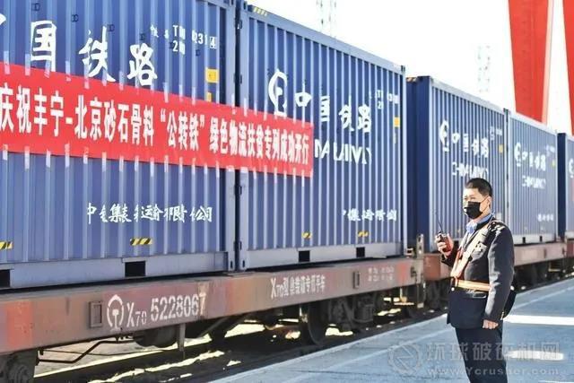 3月14日上午,一列編組50輛滿載著100個集裝箱、總重3200噸的砂石骨料專列緩緩駛入北京鐵路局大紅門貨場,標志著河北省豐寧滿族自治縣尾礦資源砂石骨料“公轉鐵”專列正式開行。