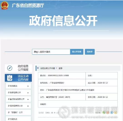 據了解,3月10日,廣東省自然資源廳印發《關于做好2020年綠色礦山建設工作的通知》,要求: