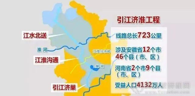 項目。總輸水路線高達723公里的引江濟淮工程,將長江和淮河兩大水系連接起來,總共跨越安徽境內12個市和河南境內兩個市,目的是為了開拓南北之間的水路交通網絡,解決沿地缺水地區的干旱以及長江和淮河的航運問題,惠及人口高達4132萬。引江濟淮工程總共分為三個部分分別建設,其為引江濟巢,巢就是巢湖,江淮溝通和江水北送三大段。但說起引江濟淮不得不又提及江淮大運河工程。