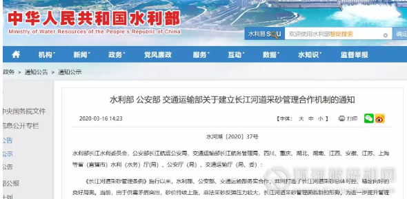 日前,水利部、公安部、交通運輸部聯合發布《關于建立長江河道采砂管理合作機制的通知》。