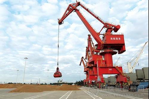 昨日(3月16日),馬來西亞籍貨輪“格林”號停靠在海南省洋浦小鏟灘碼頭,4臺門機的抓斗正從貨輪上卸下從東南亞進口的河砂。