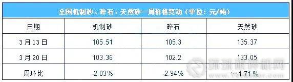 具體來看本周機制砂、碎石、天然砂價格變動情況如下:
