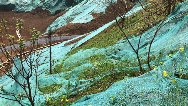 剛剛復工的工人們,正在一棵樹一棵樹的檢查,對倒伏的進行培土扶正。山坡上,幾名工人在嫁接橫貫山體的輸水管道。巨大綠網覆蓋下的黃土中,小草已開始大面積發芽。油菜花更是迫不及待地沖破綠網,長勢喜人。黃色的花朵,引來了不少蜜蜂和蝴蝶。在山坡下的一汪小水潭里,記者甚至看到了水鳥。