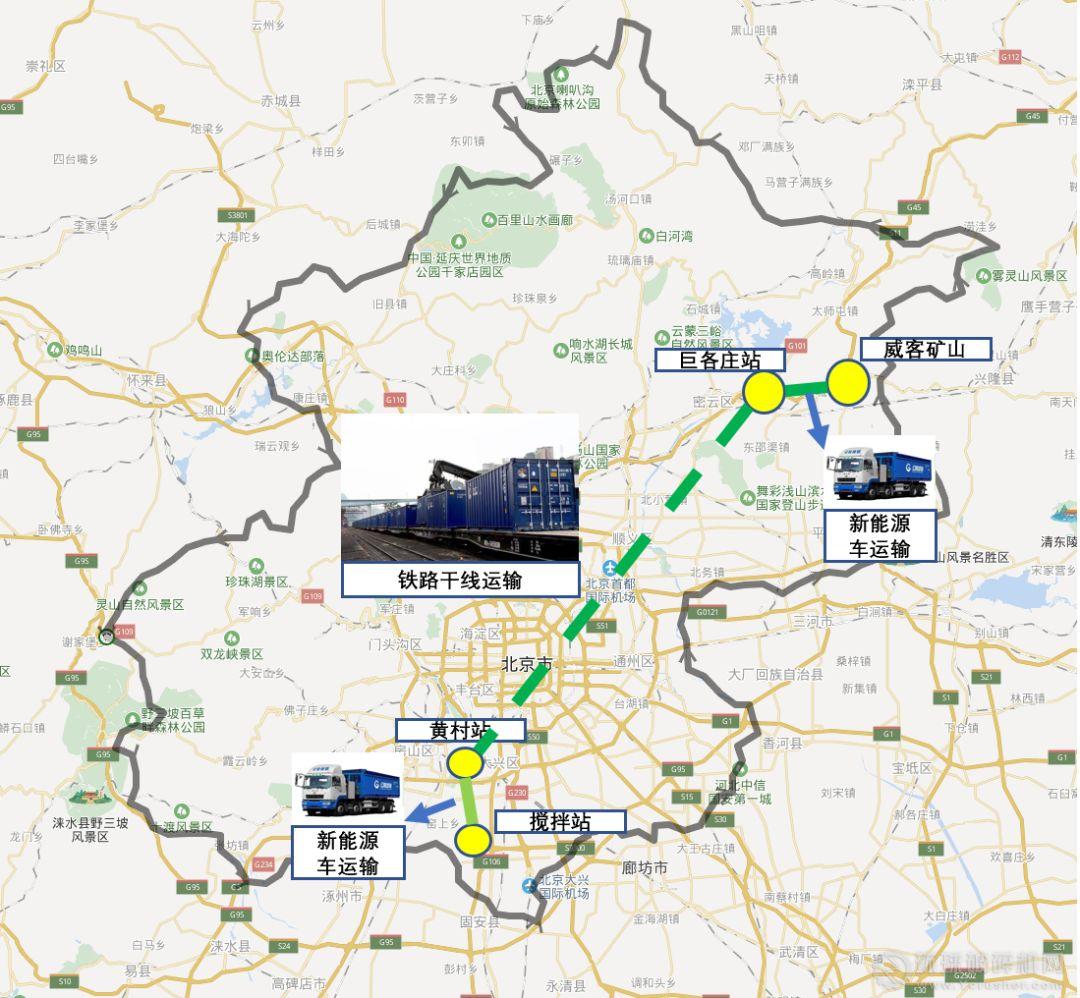 在傳統的鐵路運輸過程中,由于涉及到兩端接駁的裝卸工作等成本,當鐵路運距超過500公里時,采用鐵路運輸所產生的成本才低于公路運輸。目前砂石骨料運輸的200公里平均運距低于傳統認為的500公里鐵路經濟運距,因此在2018年前,貨主方主要選擇重柴貨車作為運力、通過公路運輸實現,也因此帶來了交通和環境污染問題。例如北京目前全市運輸礦建材料的重柴貨車約1萬輛次/日,每年帶來1.9萬噸的污染物排放,進一步加劇了環境污染。