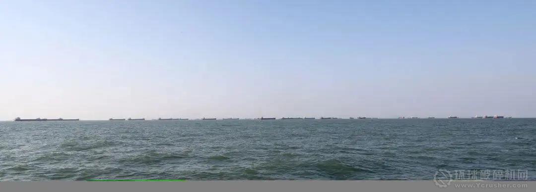 沿海水域,遠遠望去,內河船連成“一條龍”。