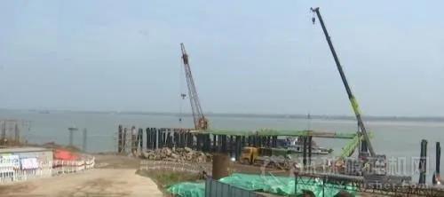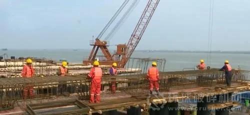在施工現場,碼頭前沿鋼管樁沉樁工作已經完成,工人們正在進行鋼管樁和汽車棧橋的上部結構施工以及陸域倉庫基礎PHC管樁沉樁工作。為保證在5月汛期到來之前完成工程節點,施工方多措并舉,搶回因疫情錯過的時間。