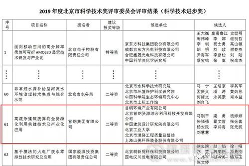 3月26日,北京市科學技術委員會公示了2019年度北京市科學技術獎評審委員會項目評審結(jié)果,由首鋼集團有限公司提名,上海山美環(huán)保裝備股份有限公司與首鋼環(huán)境產(chǎn)業(yè)有限公司、北京首鋼資源綜合利用科技開發(fā)有限公司、中國建筑設計研究院有限公司、北京工業(yè)大學、北京市道路工程質(zhì)量監(jiān)督站共同參與完成的《高混雜建筑廢棄物全資源化利用關鍵技術及產(chǎn)業(yè)化應用》項目獲得2019年度北京市科學技術進步獎二等獎。