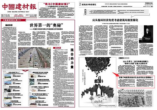 二、生產(chǎn)的磚瓦類建筑垃圾再生無機料成功應用于北京某小區(qū)的道路底基層和基層施工中,2015年11月12日的《中國建材報》在第2版“建筑廢棄物資源化”刊登了標題為“首鋼千噸建筑垃圾再生品應用北京道路施工”的文章。