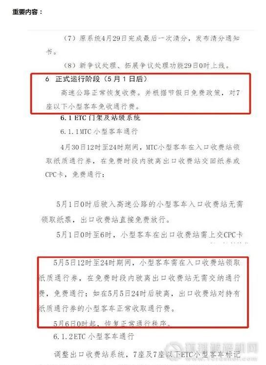 《關于高速恢復收費系統切換方案》的征求意見稿文中指出,高速可能5月1日后恢復正常收費。