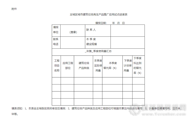 附件:主城區(qū)城市建筑垃圾再生產(chǎn)品推廣應(yīng)用試點進度表