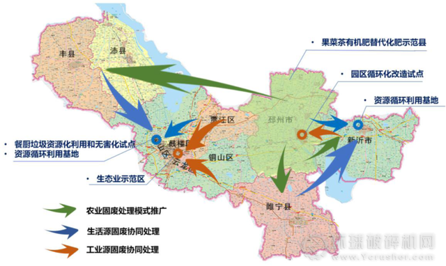 (1)培育具有固廢處置利用不同特征的骨干企業,為不同行業發展樹立“無廢企業”典型案例。(2)建設具有協同效應統籌發展的共生園區,實現園區內設施共享及項目協同。(3)識別產業集聚特征,依托相關試點基地完成發展資源循環利用新興產業的布局。