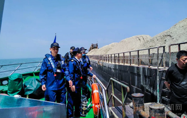 砂石運輸船舶,通過望遠鏡目視觀察該船前部有疑似輸送帶狀物體,現場指揮人員隨即決定關閉海巡艇自身AIS,高速機動至對方船舶附近進行抵近觀察,經查證識別該船船體外觀符合內河船特征,執法人員隨后實施了登輪檢查,經查該船現場無法提供有效的船舶證書和船員適任證書,目前該船已被扣押于霞關港附近水域。