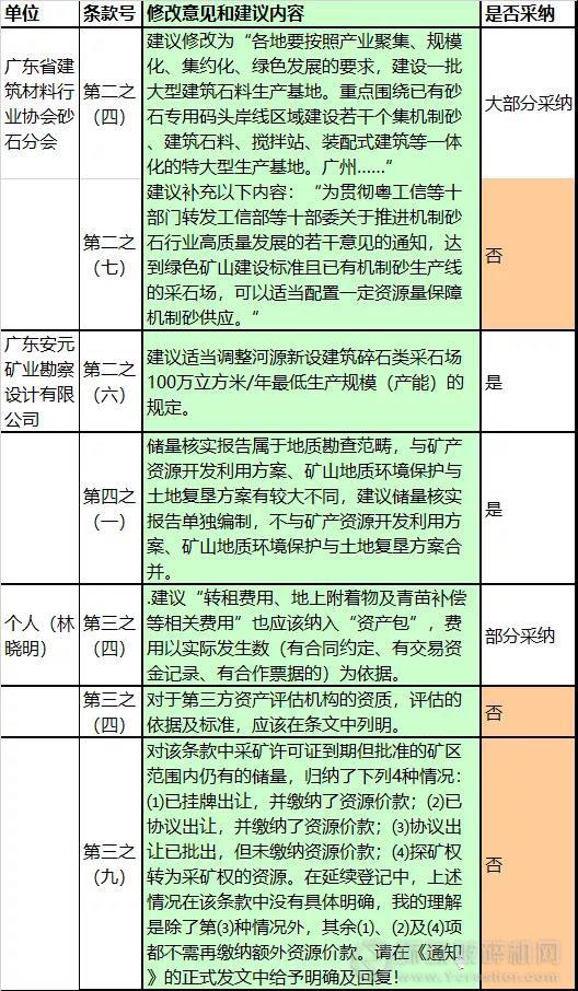 4月20日,廣東省自然資源廳《關于加強我省建筑石料資源保障工作的通知(征求意見稿)》征求社會公眾意見情況公開,共有4條建議被部分或完全采納。