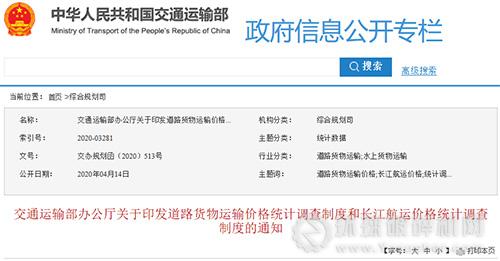 高速恢復收費后,運費也將迎來上調。此前,交通運輸部發布《關于印發道路貨物運輸價格統計調查制度和長江航運價格統計調查制度的通知》。