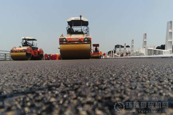 最終大橋路面施工方保利長大工程有限公司副總工程師楊東來博士和他的團隊,找遍了全國機制砂生產企業,最后找到了南方路機,終于找到利用國產設備生產出符合大橋建設要求的機制砂。