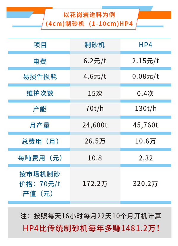下面我們對比傳統(tǒng)沖擊破和華寶HP4制砂數(shù)據(jù)對比!