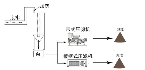 二、國內(nèi)普通廢水處理: 加藥快速沉淀+帶式壓濾機(jī)/板框壓濾機(jī)