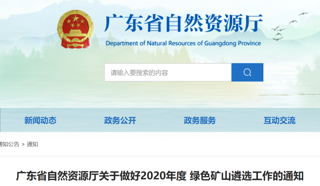 廣東省自然資源廳關于做好2020年度綠色礦山遴選工作的通知