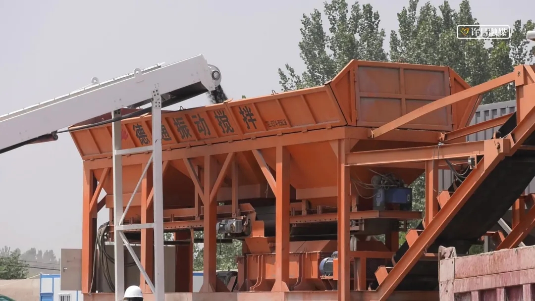這個是再生混合骨料,這種再生骨料是經(jīng)過嚴(yán)格配比的,經(jīng)過我們的振動攪拌設(shè)備充分拌合后,生成的再生水穩(wěn),可以直接用于道路基層的鋪設(shè)。相當(dāng)于在拆遷現(xiàn)場,無需轉(zhuǎn)運,就地把建筑垃圾變廢為寶。