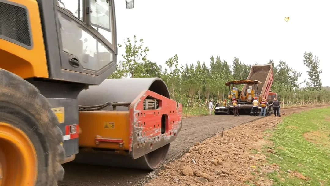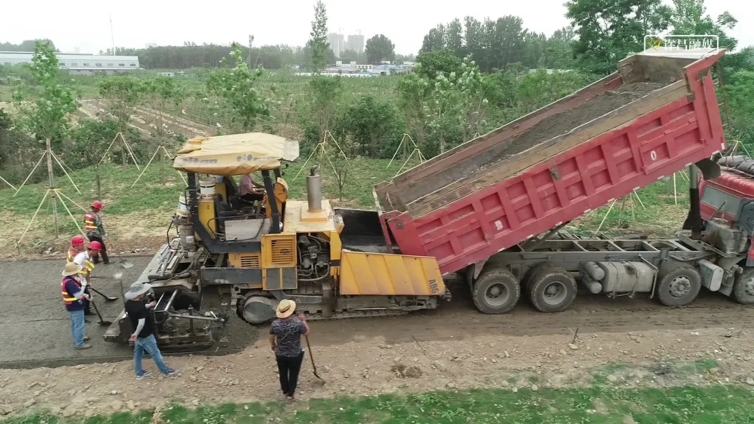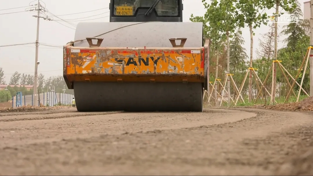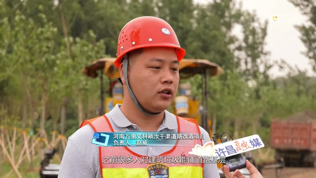 在許昌穎汝干渠堤頂路提升改造工程龐莊段施工現(xiàn)場,施工人員正在用建筑垃圾制成的再生水穩(wěn)鋪筑路基。許昌潁汝干渠堤頂路提升改造項目主線道路基層,也是首次利用建筑垃圾回收再利用技術(shù),應(yīng)用建筑固廢再生水穩(wěn)路面材料。