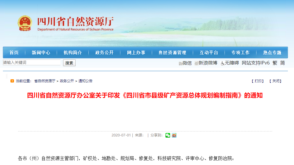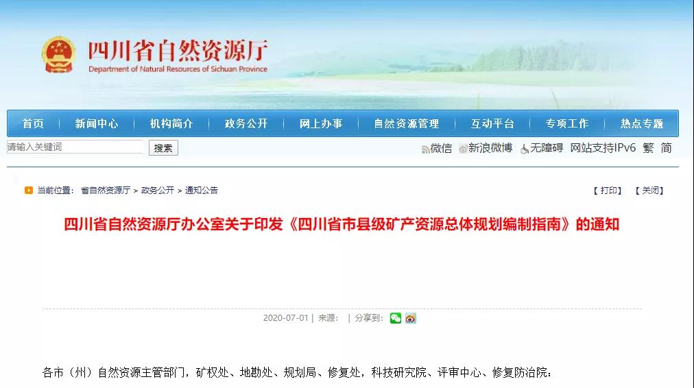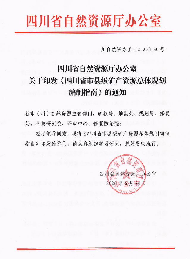 近日,四川省自然資源廳辦公室印發《四川省市縣級礦產資源總體規劃編制指南》。