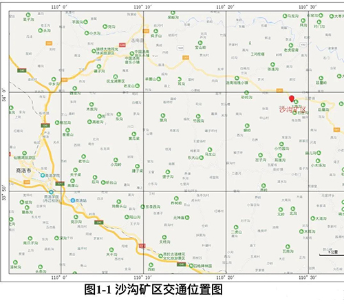 礦區(qū)中心地理坐標(biāo)為:東經(jīng)110°26′48″ 北緯33°59′18″,面積0.9326 km2