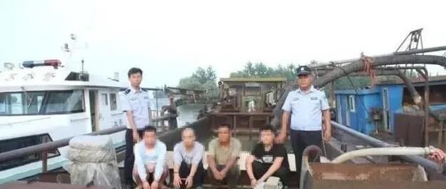 看到民警的巡邏艇靠近,船上采砂人員一邊喊叫一邊躲避,民警及漁政工作人員迅速登上采砂船,現場抓獲非法采砂嫌疑人8名,其中1名當時正在小快艇上的嫌疑人,發現民警后駕駛快艇逃離現場。經現場初查,涉嫌非法采砂嫌疑人已作案近1個小時,轉砂船船艙已在現場采砂60余噸。