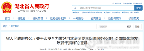 2020年4月30日,湖北省人民政府辦公廳印發《全力做好自然資源要素保障服務經濟社會加快恢復發展若干措施》,提出全力保障重大項目建設,穩定建筑石料供應: